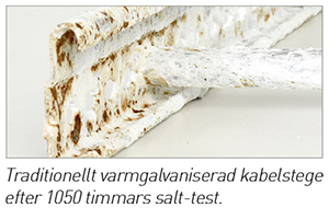 Rostfria- och syrafasta kabelstegar (även förstärkt tung kabelstege). Stegarna är 6 m långa och används i miljöklasser upp till max C5-M.