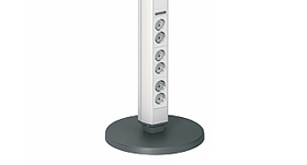 Fristående och flyttbar uttagsstav utrustad med en installationsbox. Förinstallerad, bestyckad med tre dubbla jordade uttag med kabel och 2xCat6 UTP med kabel. Böjligt rör med adapter och monteringsanvisning medföljer.