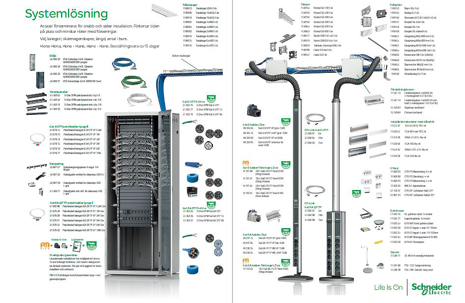 Nu finns en enkel och översiktlig valguide som tydligt visar på de olika delarna i en högkvalitativ, säker och snygg lösning. Stora valmöjligheter för dig med garantin att du får produkter som är enkla att installera och använda. Valguiden inkluderar allt från nätverksskåp till kabelförläggning och även de golvboxar och stavar som matar ut el och nätverk till slutanvändaren.