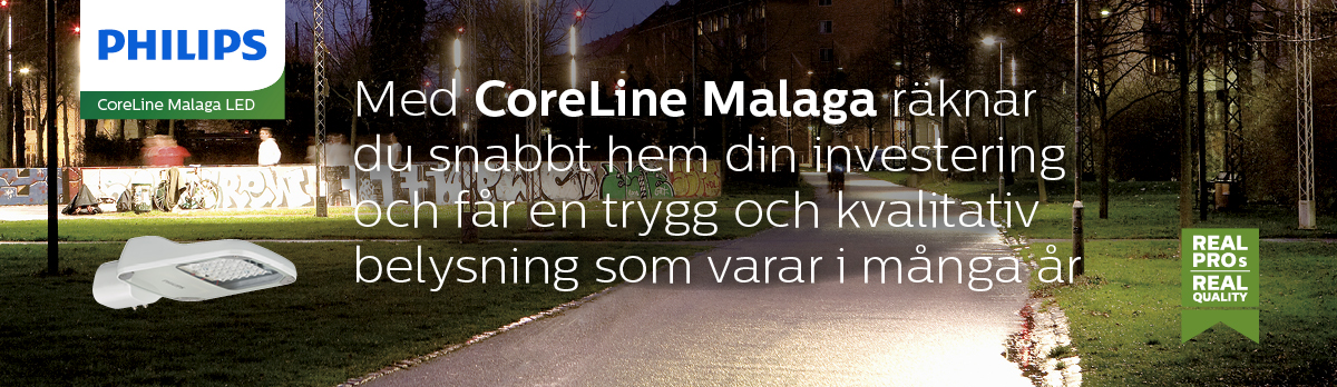 Nu utökar vi vår succéfamilj CoreLine med en utomhusarmatur som ger dig möjligheten att få minst samma kvalitet på ljuset som dina gamla traditionella armatur. Med CoreLine Malaga räknar du snabbt hem din investering och du får en trygg och kvalitativ belysning som varar i många år (100.000 timmar L70).